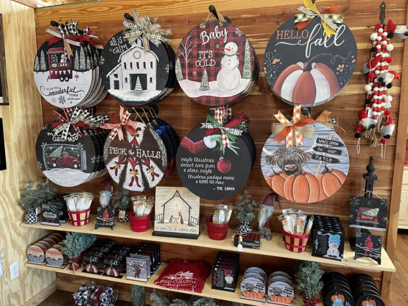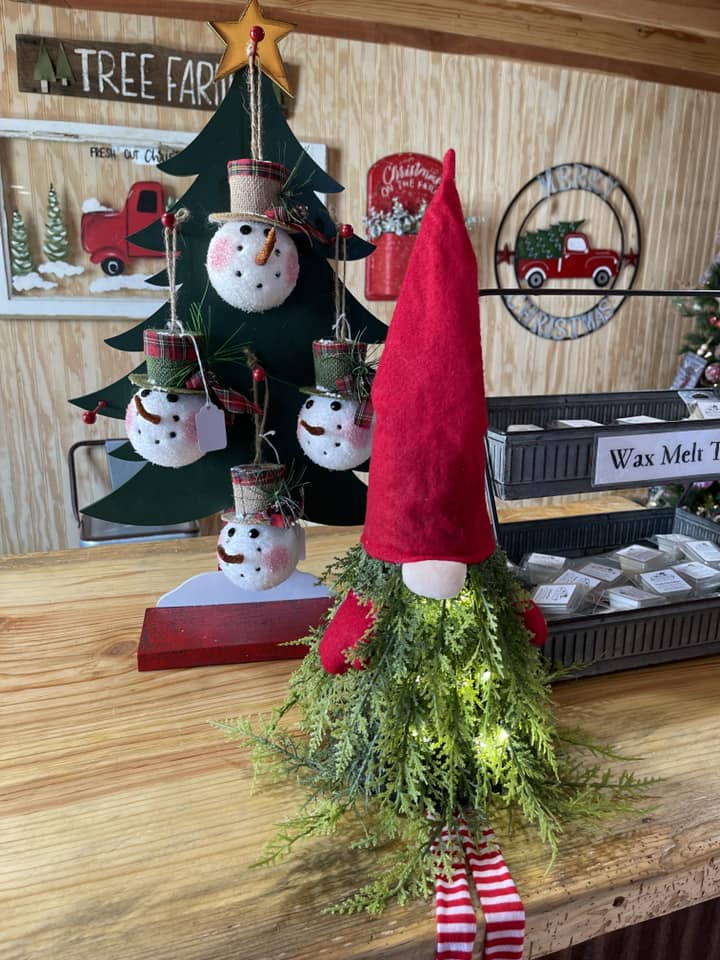 Our gift shop specializes in unique, handmade Christmas decor. We also have our own scented wax products, made right here at Red Colony Tree Farm. Enjoy a cup of hot cocoa or cider and fresh baked cookies from our concession stand, found inside the gift shop.