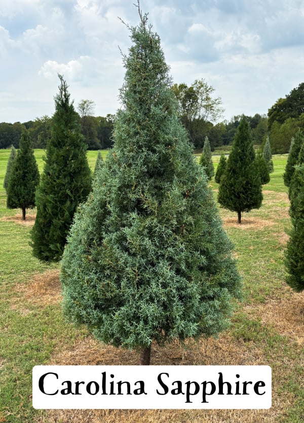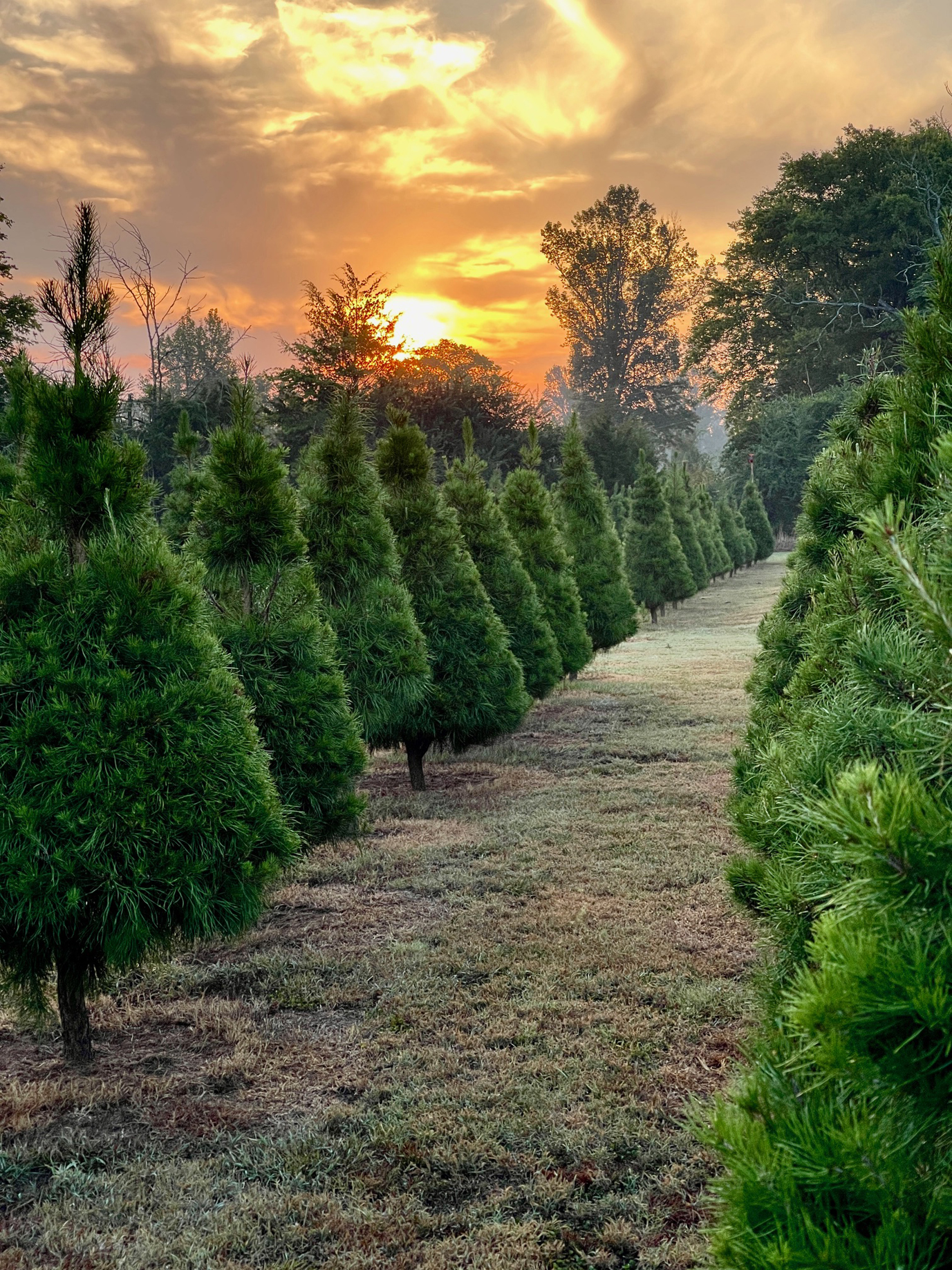 We are primarily a cut-your-own Christmas tree farm. We grow several varieties: Virginia Pine, Murray Cypress, Carolina Sapphire, and Blue Ice Cypress. We also have fresh precut Fraser Fir trees, wreaths, and porch pots.